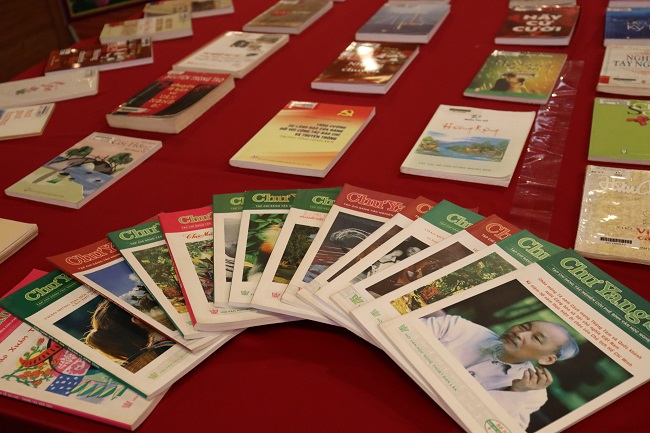 Đồng chí Lương Nguyễn Minh Triết – Uỷ viên Trung ương Đảng, Bí thư Tỉnh uỷ cùng các đại biểu tham quan trưng bày tại buổi gặp mặt. Ảnh: Duy Thương