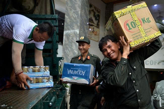 Dẫu những chuyến hàng có nặng nhưng các chiến sĩ CSCĐ vẫn luôn nở nụ cười.