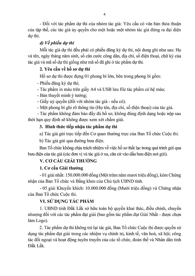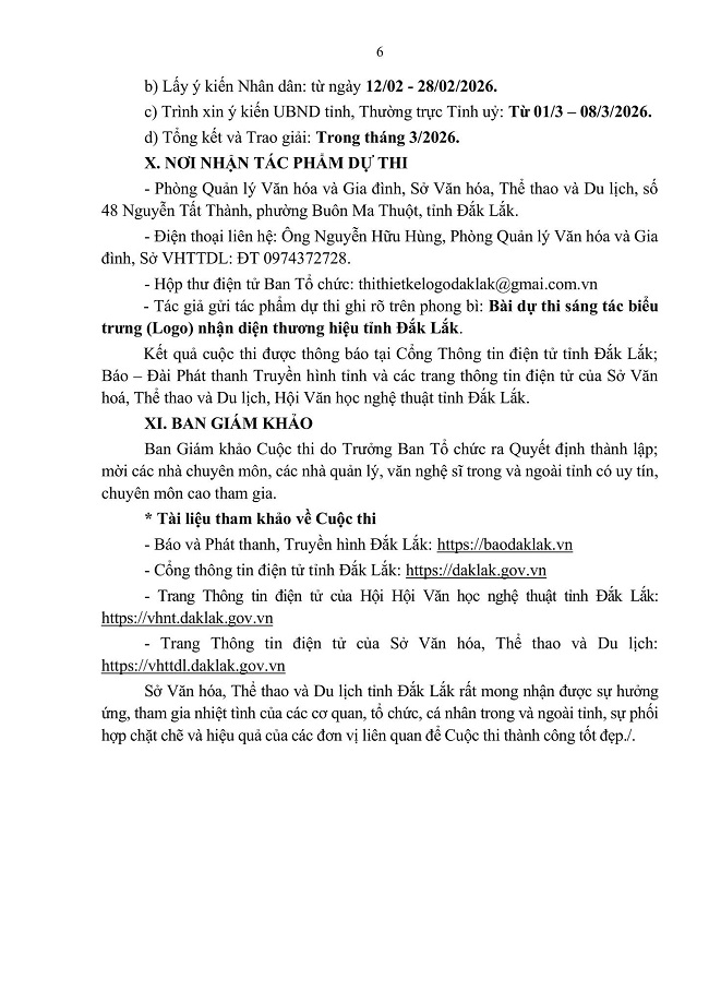 Địa chỉ nhận bài: Phòng Quản lý Văn hóa và Gia đình – Sở Văn hóa, Thể thao và Du lịch tỉnh Đắk Lắk và thông qua email cuộc thi: thithietkelogodaklak@gmail.com.vn.