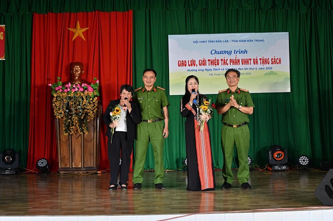 Ngày 05/4, Hội Văn học Nghệ thuật (VHNT) tỉnh Đắk Lắk phối hợp với Trại giam Đắk Trung (Cục C10 – Bộ Công an) tổ chức chương trình “Giao lưu âm nhạc, giới thiệu tác phẩm VHNT và tặng sách”. Hoạt động nhằm hưởng ứng Ngày Sách và Văn hóa đọc Việt Nam lần thứ 5, đồng thời kỷ niệm 51 năm Ngày giải phóng miền Nam, thống nhất đất nước.