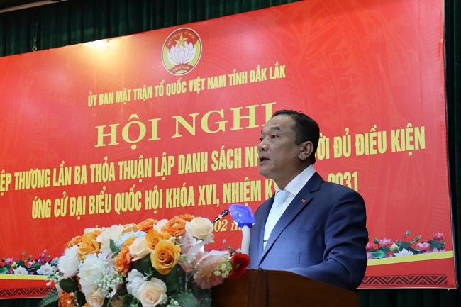 Sáng ngày 10/02, Ủy ban MTTQ Việt Nam tỉnh Đắk Lắk tổ chức Hội nghị hiệp thương lần thứ ba để lựa chọn, lập danh sách những người đủ tiêu chuẩn ứng cử Đại biểu Quốc hội khóa XVI và HĐND tỉnh, nhiệm kỳ 2026-2031.