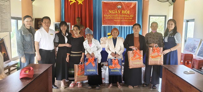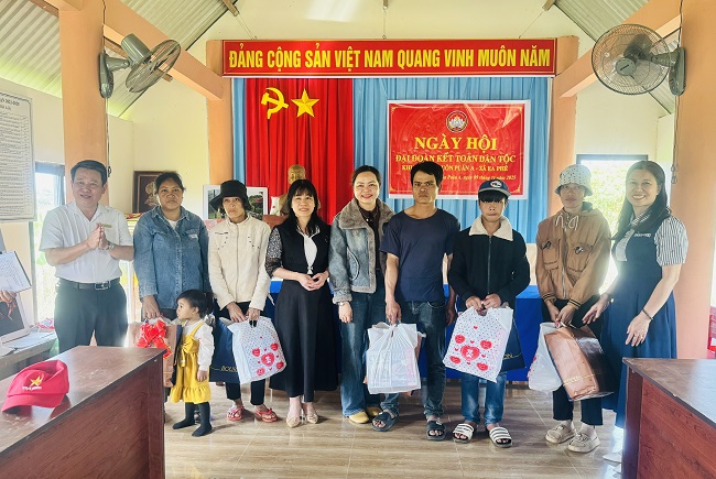 Tại buổi gặp gỡ, đoàn đã ân cần thăm hỏi tình hình đời sống, sản xuất của bà con, đồng thời bày tỏ niềm vui trước những thay đổi tích cực của buôn làng trong năm qua. Đoàn đã trao tặng 18 phần quà thiết yếu và những lời chúc tốt đẹp nhất đến các gia đình chính sách, hộ nghèo và cận nghèo. Đây là hoạt động thường niên mang ý nghĩa nhân văn sâu sắc, thắt chặt tình đoàn kết quân - dân, đồng thời khơi gợi cảm hứng sáng tạo cho đội ngũ văn nghệ sĩ từ thực tiễn đời sống vùng đồng bào dân tộc thiểu số.