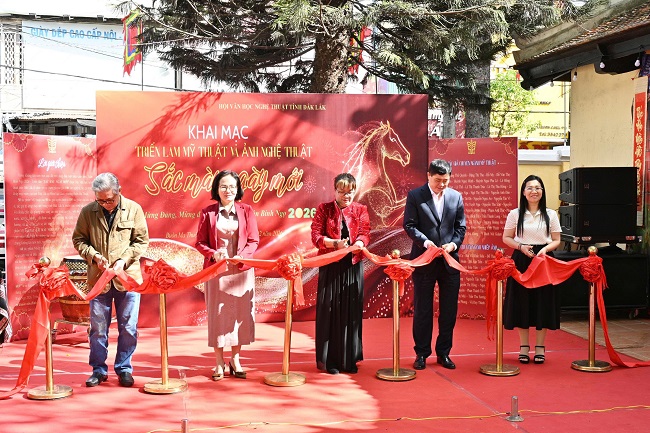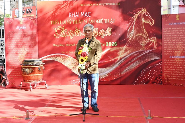 Sáng 12/02, tại Đình Lạc Giao (phường Buôn Ma Thuột), triển lãm mỹ thuật và ảnh nghệ thuật với chủ đề “Sắc màu ngày mới” chính thức khai mạc. Đây là sự kiện nghệ thuật đặc sắc chào đón Xuân Bính Ngọ do Hội Văn học nghệ thuật tỉnh Đắk Lắk phối hợp với Sở Văn hóa, Thể thao và Du lịch tỉnh, Bảo tàng Đắk Lắk tổ chức.