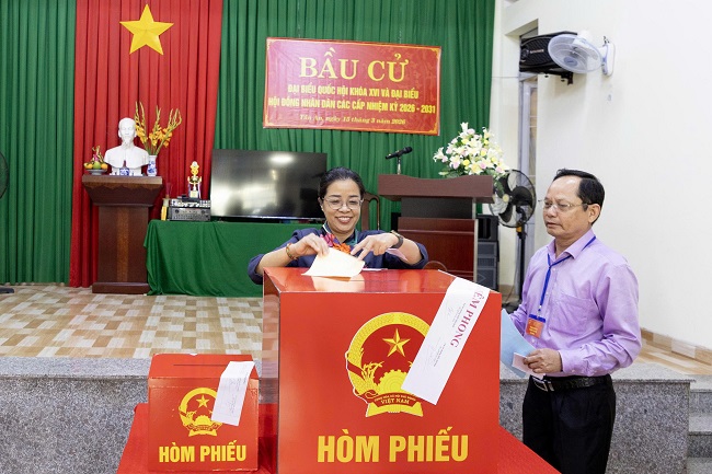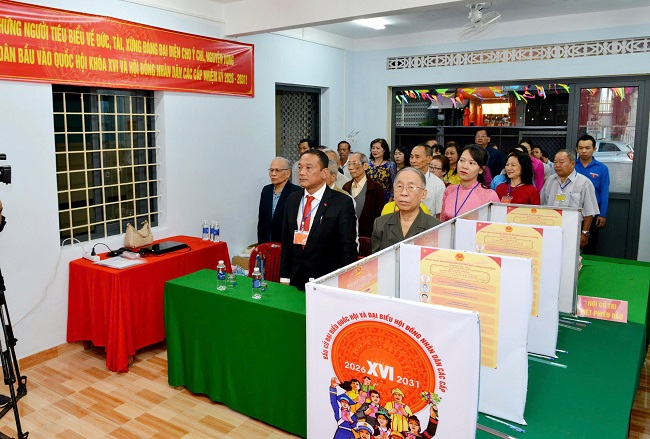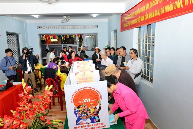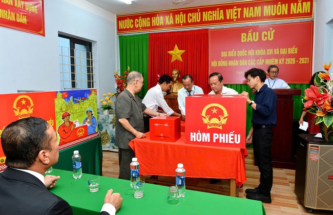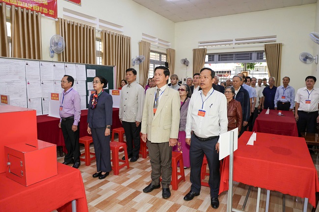 Cùng thời điểm này, tại điểm bỏ phiếu số 01, đồng chí Huỳnh Thị Chiến Hòa – Phó Bí thư Tỉnh ủy, Chủ tịch HĐND tỉnh (nhiệm kỳ 2021-2026) cũng đã thực hiện xong nghĩa vụ bầu cử. Không khí tại đây diễn ra hết sức sôi nổi và nghiêm túc. Đồng chí Huỳnh Thị Chiến Hòa đã dành thời gian thăm hỏi, động viên các thành viên tổ bầu cử và cử tri cao tuổi đang có mặt. Hình ảnh vị lãnh đạo tỉnh xếp hàng chờ đến lượt bỏ phiếu đã tạo ấn tượng đẹp về sự gần gũi, gương mẫu của người cán bộ trước nhân dân.