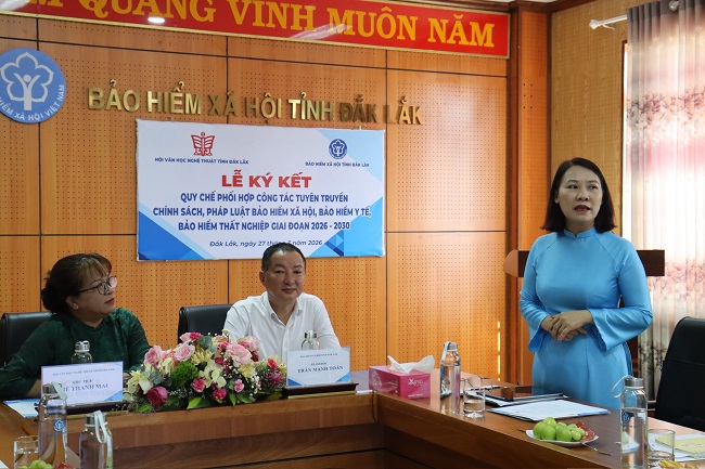 Nhà văn Niê Thanh Mai, Chủ tịch Hội VHNT tỉnh nhấn mạnh, việc ký kết phối hợp không chỉ nhằm nâng cao hiệu quả công tác tuyên truyền ở cơ sở, mà còn mở ra một “nhịp cầu” gắn kết chặt chẽ hơn giữa hai đơn vị. Thông qua sự đồng hành này, những chính sách về BHYT, BHXH sẽ được lan tỏa rộng rãi, kịp thời, chính xác đến gần hơn với công chúng trong tỉnh thông qua các tác phẩm văn học nghệ thuật và hình thức truyền thông số. Đây cũng là một cơ hội mới cho các văn nghệ sĩ khi dùng ngòi bút và tư duy sáng tạo của mình để phụng sự xã hội. Nghệ thuật chân chính không bao giờ tách rời hơi thở cuộc sống, và việc bảo vệ quyền lợi sức khỏe cũng như tương lai của người lao động chính là đề tài mang tính nhân văn sâu sắc nhất.