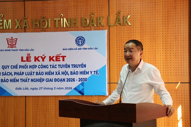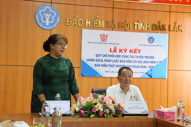 Sáng 27/3, Bảo hiểm xã hội tỉnh Đắk Lắk và Hội VHNT tỉnh đã tổ chức lễ ký kết quy chế phối hợp tuyên truyền chính sách Bảo hiểm xã hội (BHXH), Bảo hiểm y tế (BHYT) giai đoạn 2026-2030 trên địa bàn.