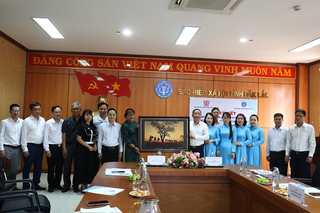 Hội VHNT tỉnh tặng ảnh nghệ thuật cho Bảo hiểm xã hội tỉnh Đắk Lắk.