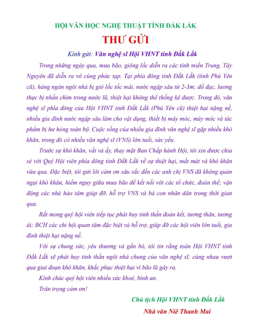 Thư gửi Văn nghệ sĩ Hội VHNT tỉnh Đắk Lắk